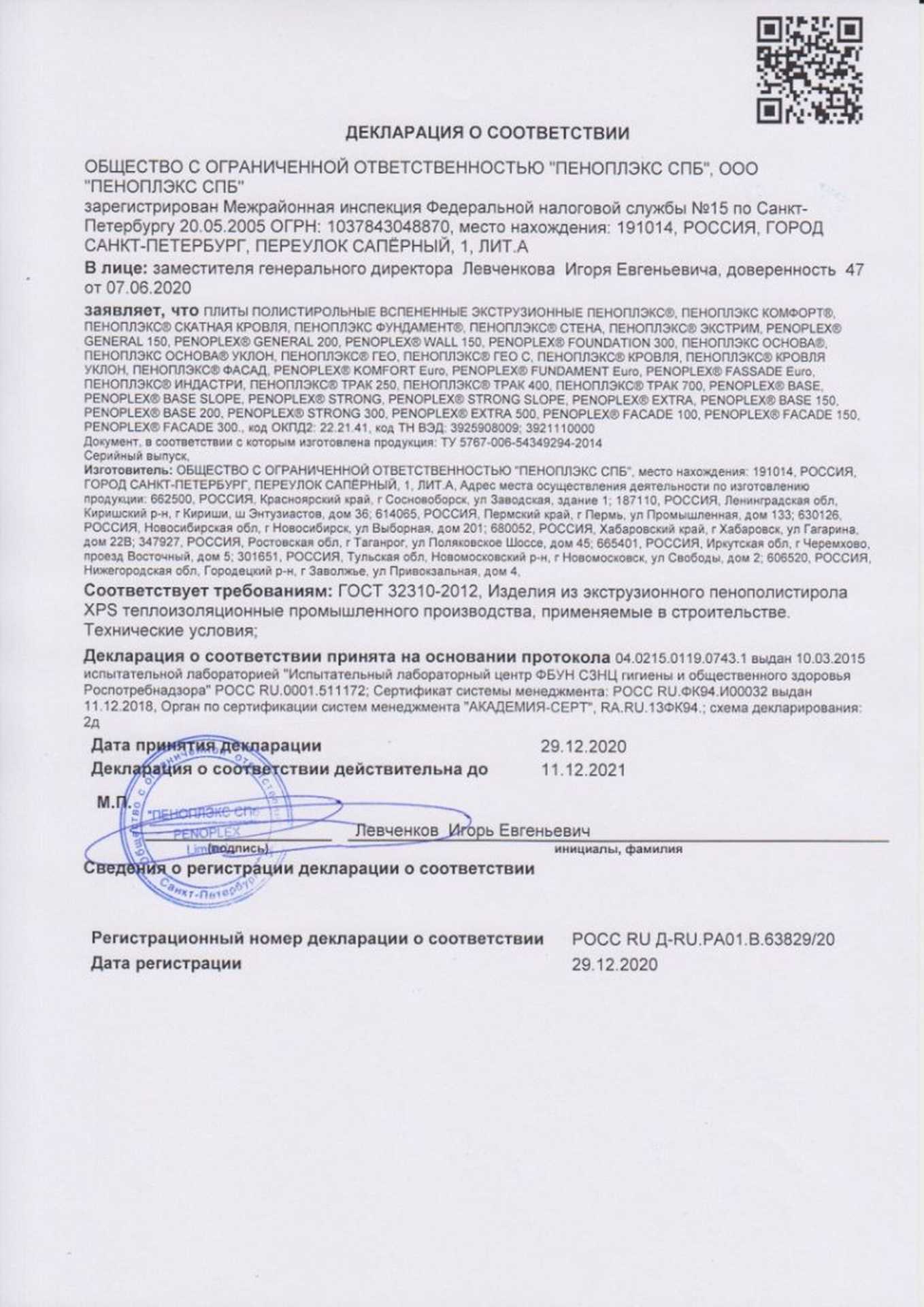 Сертификаты продукции Пеноплэкс